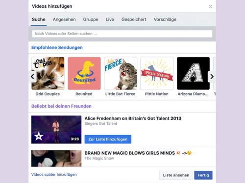 Das größte Problem: Ihr könnt ausschließlich Videos einbinden, die bereits auf Facebook hochgeladen wurden. YouTube-Videos, Netflix-Inhalte oder Videos von anderen Plattformen sind tabu. Das macht die Auswahl extrem begrenzt und oft wenig interessant.