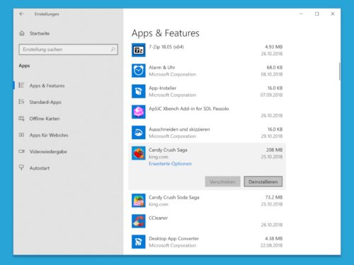 Wer Windows 10 neu installiert oder seinen Computer neu aufsetzt, findet anschließend jede Menge unnützer Programme im Startmenü. Spiele wie Candy Crush oder auch andere Programme, die man nicht braucht, landen dabei mit auf der Festplatte und belegen dort nur unnötig Speicher.