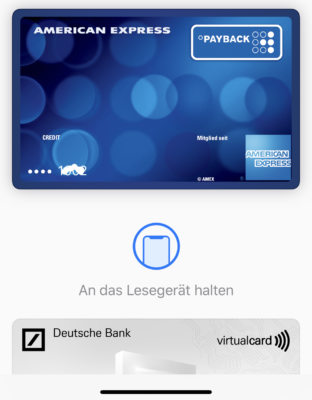 Wenn mehr als eine Karte für Apple Pay eingerichtet wurde, wird standardmäßig eure Hauptkarte verwendet. Soll eine andere Karte zum Einsatz kommen, tippt ihr diese einfach an, bevor das iPhone an den Kartenleser gehalten wird. So einfach ist der Kartenwechsel.