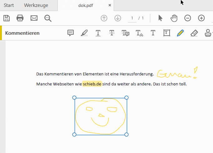 Edge bietet sogar Druckempfindlichkeit bei kompatiblen Stiften und speichert eure Änderungen automatisch. Ein großer Vorteil: Die Kommentare bleiben auch in anderen PDF-Readern sichtbar.