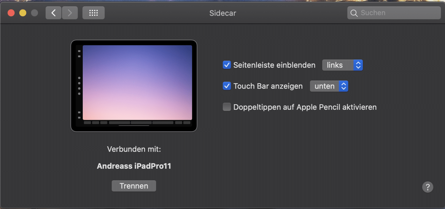 Die Akkulaufzeit des iPads reduziert sich bei intensiver SideCar-Nutzung merklich. Plant längere Sessions entsprechend oder nutzt die USB-C-Verbindung, die das iPad gleichzeitig lädt.