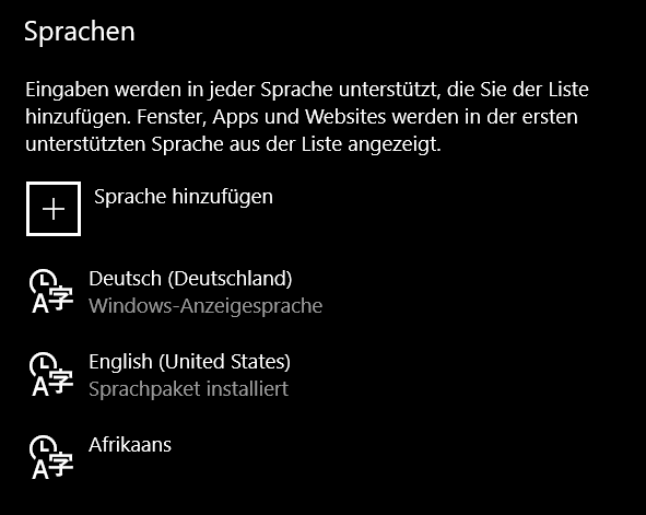 Wenn ihr aber nur eine Sprache eingerichtet habt, dann bringt das natürlich nichts. Dann müsst ihr erst weitere Sprachen oder Tastaturlayouts hinzufügen.
