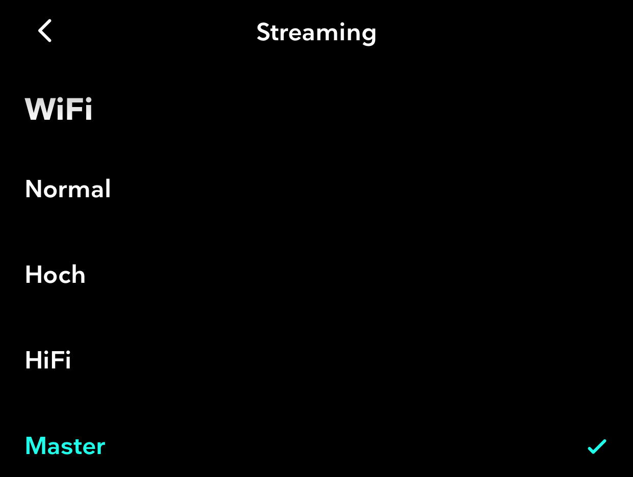 Ein Tipp darauf öffnet das Qualitätsmenü, das clever in zwei Bereiche unterteilt ist: Unter WiFi legt ihr die Wiedergabequalität für WLAN-Verbindungen fest, unter Mobil die für Mobilfunk. Diese getrennte Steuerung ist goldwert – zu Hause mit Flatrate könnt ihr voll aufdrehen, unterwegs bleibt ihr sparsam.
