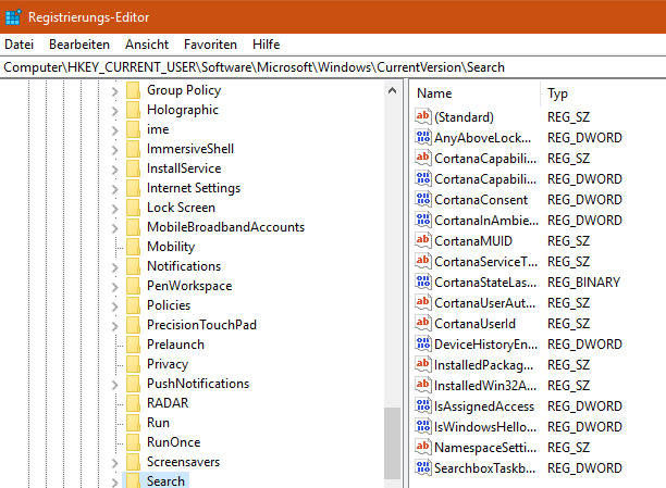 Normalerweise geben Sie in die Suchleiste in de Taskleiste bzw. durch Klick auf die Lupe den Suchbegriff ein und lassen Windows 10 den Rest tun: Alle Elemente, die Windows lesen kann (darunter fallen die Office-Dokumente, Textdateien, E-Mails, PDF-Dateien und vieles mehr) werden auf den Suchbegriff durchsucht und die ihn enthaltenden Elemente kategorisiert und sortiert angezeigt. Dazu sucht Windows 10 aber nicht nur die lokalen Verzeichnisse, sondern auch das Internet. Ist bing eingebunden und es liegt auf der Server-Seite ein Fehler vor, dann bekommt Windows 10 einen Berechtigungsfehler zurückgespielt. Damit scheitert die Suche komplett. Die Lösung: Deaktivieren Sie bing über die Registry.