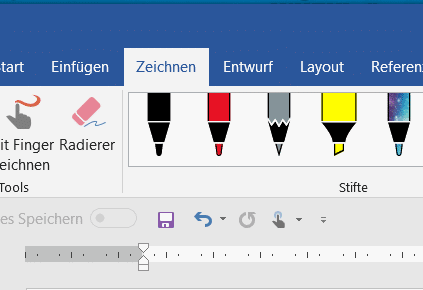 Egal, ob ihr in Word, Excel oder PowerPoint arbeitet: Alle aktuellen Office-Versionen (Microsoft 365, Office 2021 und Office 2024) haben einen Registerreiter Zeichnen. Ein Klick darauf öffnet eine Werkzeugleiste mit verschiedenen digitalen Stiften, Markern und Zeichenwerkzeugen.