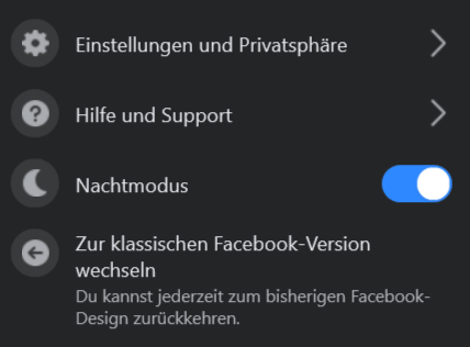 Seit 2024 bietet Facebook sogar drei verschiedene Dark Mode-Varianten:
