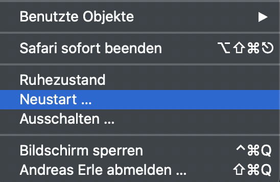 Klickt zunächst auf den Apfel oben links, dann auf Neustart. Haltet dann sofort die Cmd- und die R-Taste gedrückt, bis das Apple-Logo erscheint. Nach dem Neustart in die Wiederherstellung zeigt euch euer Mac ein Menü mit verschiedenen Optionen an.