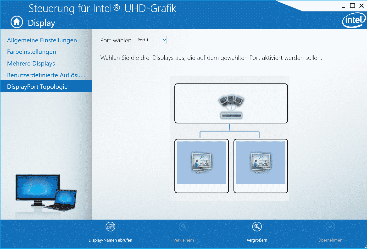 Unter Display könnt ihr die Auflösung, Bildwiederholfrequenz und die Anordnung mehrerer Monitore festlegen. Besonders praktisch sind die vordefinierten Profile, die ihr je nach Anwendung wechseln könnt. Bei Gaming-Laptops mit Intel Arc Graphics oder modernen integrierten Lösungen stehen oft Bildwiederholraten von 120Hz oder mehr zur Verfügung. Die Topologie-Einstellungen helfen dabei, Multi-Monitor-Setups optimal zu konfigurieren.