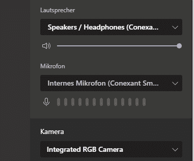 So geht’s in Microsoft Teams: Klickt im Meeting auf die drei Punkte (Weitere Aktionen), dann auf Geräteeinstellungen. Hier könnt ihr unter Kamera, Mikrofon und Lautsprecher die gewünschten Raumgeräte auswählen. Teams merkt sich diese Einstellungen meist für künftige Meetings in diesem Raum.