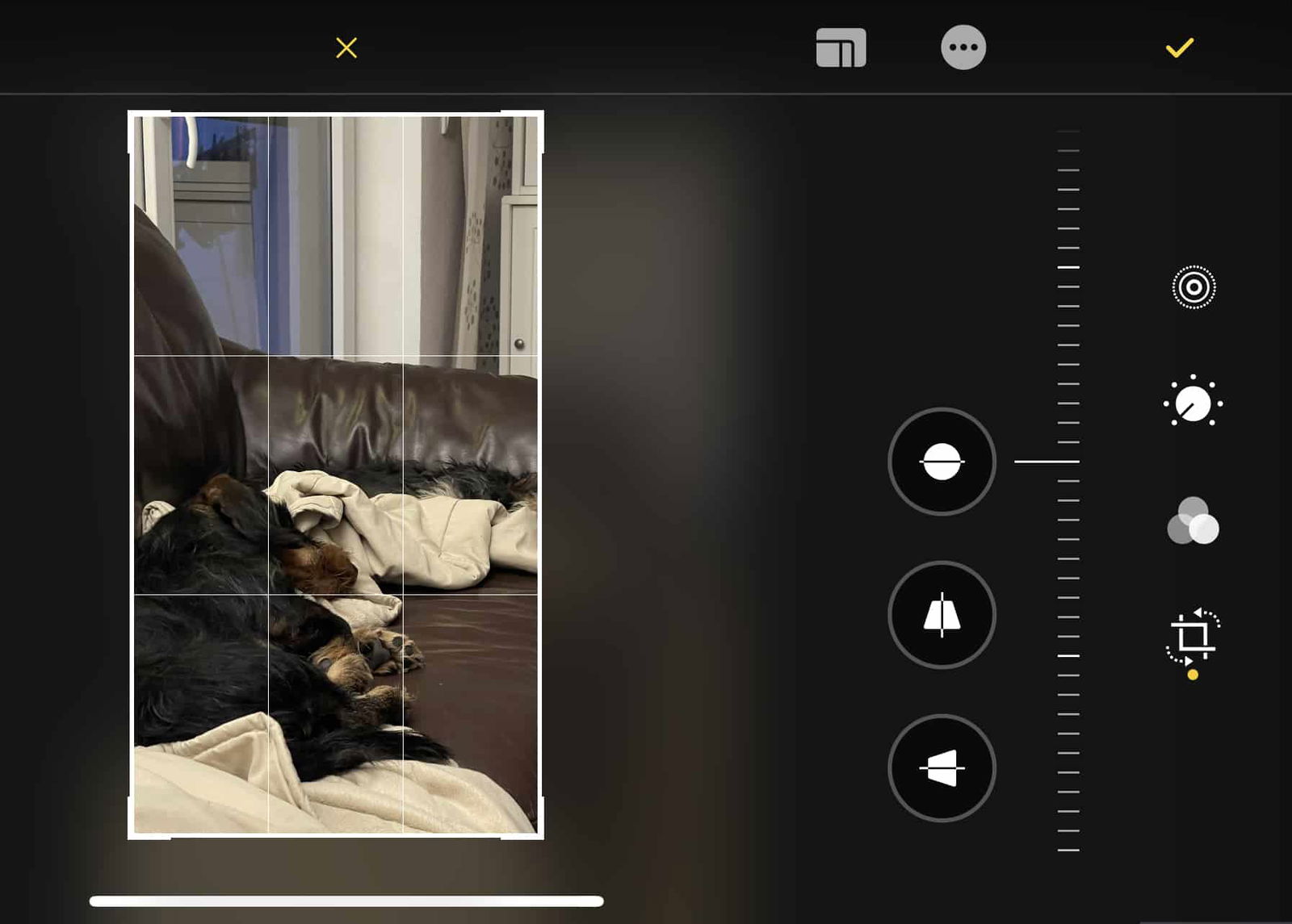 Horizont gerade richten: Nutzt die automatische Begradigung, indem ihr das Bild leicht dreht. iOS hilft mit Hilfslinien dabei.