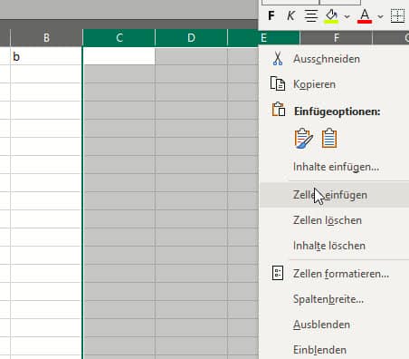 - Einfügen: Rechtsklick in den markierten Bereich und „Zellen einfügen“ wählen