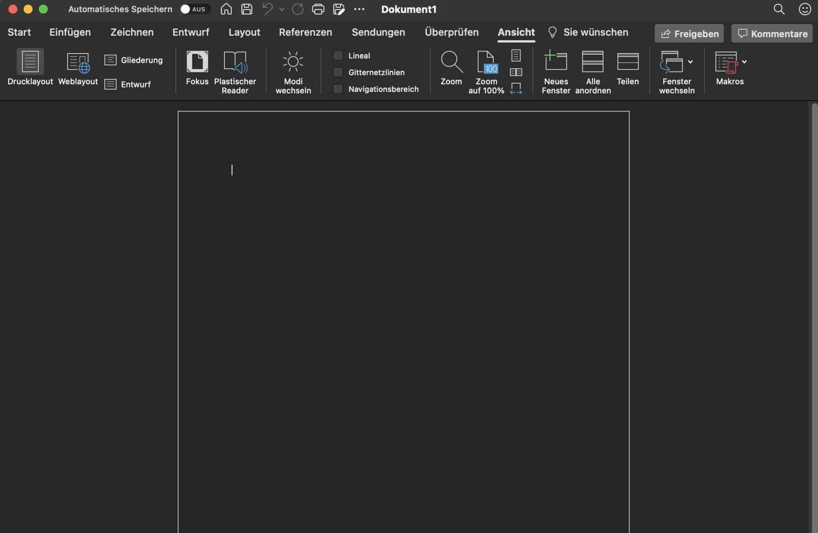 Die schwarze Word-Seite mag zunächst gewöhnungsbedürftig sein, aber der Dark Mode bietet durchaus Vorteile. Probiert ihn einfach mal eine Woche aus – viele Nutzer möchten danach nicht mehr zurück zum klassischen weißen Design. Und wenn doch, ist der Wechsel nur einen Klick entfernt.