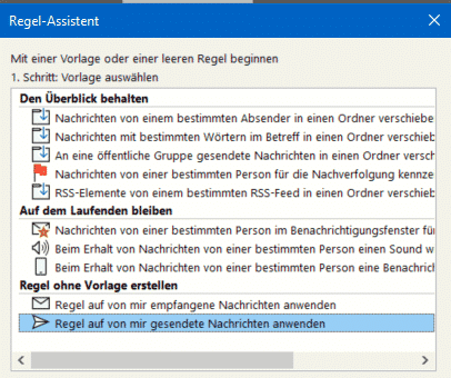 Bei der klassischen Desktop-Version nutzt ihr die bewährte Regel-Funktion. Klickt auf Datei > Regeln und Benachrichtigungen verwalten > Neue Regel. Klickt ganz unten in der Liste auf Regel auf von mir gesendete Nachrichten anwenden.