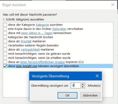 Verzögerung über Regeln einrichten (Desktop-Outlook)