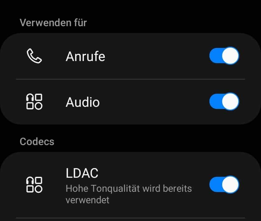 Tippt auf Einstellungen > Bluetooth, dann auf das Zahnrad-Symbol oder kleine i neben dem Namen des Kopfhörers. Je nach Android-Version und Hersteller kann das Symbol variieren. Unter „Verwenden für“ könnt ihr einstellen, für welche Anwendungen euer Smartphone diesen nutzen soll. Darunter findet ihr einen Schalter LDAC oder HD Audio. Schaltet diesen ein, damit Android die Übertragung dafür optimiert.