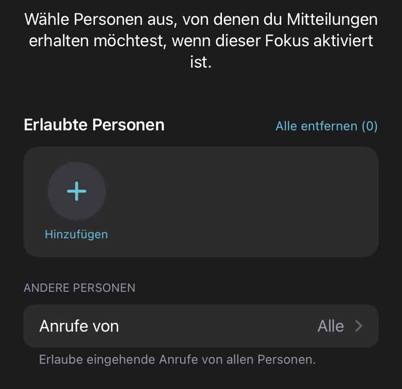 Besonders praktisch: Ihr könnt festlegen, von welchen Kontakten ihr trotzdem erreicht werden wollt und welche Apps Benachrichtigungen senden dürfen. Wenn ihr Geräteübergreifend teilen aktiviert, wird der Modus auf allen Geräten aktiviert, die mit der selben Apple ID angemeldet sind – also iPhone, iPad, Mac und Apple Watch.