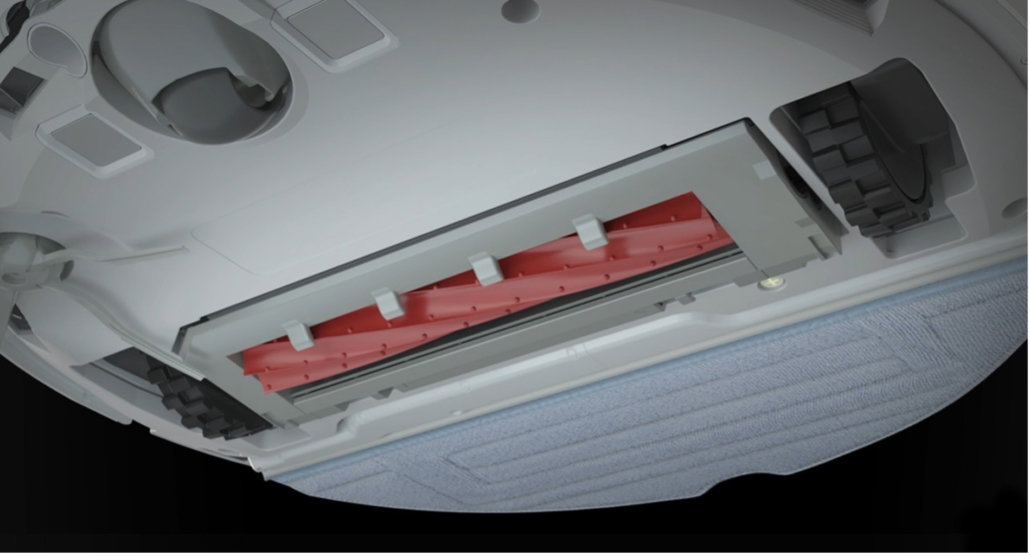 Besonders clever: Die Vollgummi-Hauptbürste verhindert Verhedderungen mit Haaren und ist deutlich wartungsfreundlicher als die Borstenbürsten älterer Generationen. Die seitliche Kehrbürste holt Schmutz auch aus Ecken und von Kanten.