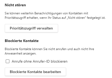 Blockierte Kontakte und Do-Not-Disturb Ausnahmen