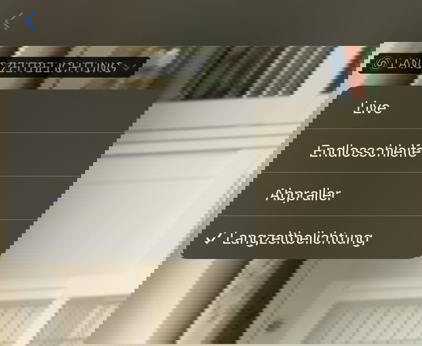 Langzeitbelichtung ist der kreativste Modus: iOS überlagert alle 45 Einzelbilder zu einem Foto mit Bewegungsunschärfe. Ideal für fließendes Wasser, Autolichter bei Nacht oder andere sich bewegende Objekte vor statischem Hintergrund.