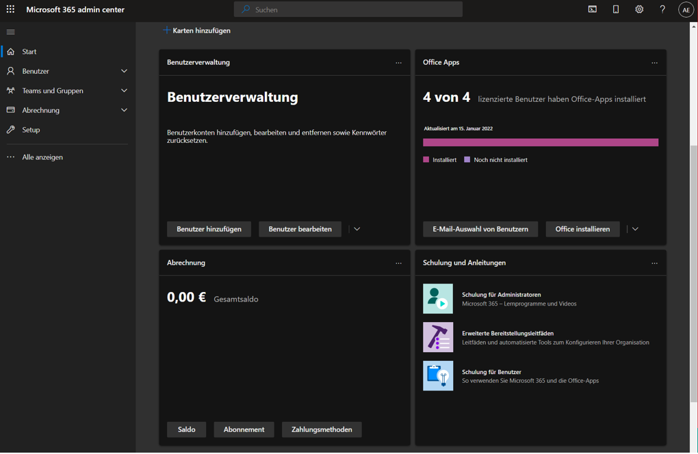 Der größte Unterschied liegt nicht in den Apps selbst, sondern in der Verwaltung. Bei Business-Plänen erhaltet ihr Zugang zum Microsoft 365 Admin Center – einem mächtigen Werkzeug für die zentrale Steuerung aller Nutzer und Dienste.