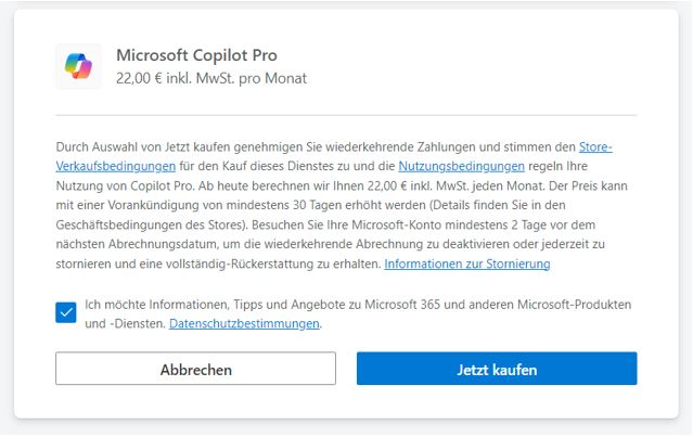 - Nachdem ihr das gemacht habt, könnt ihr das Abo von Copilot Pro hier abschließen. Seit 2025 erfolgt die Aktivierung deutlich schneller – meist innerhalb weniger Minuten.
