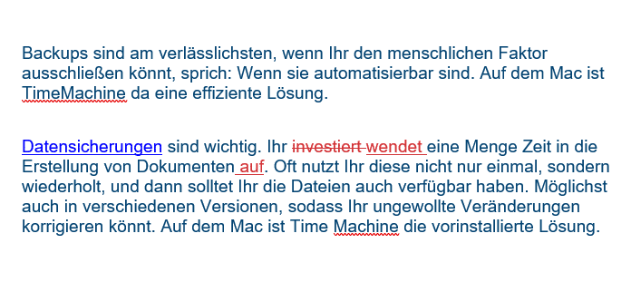 - Verschiedene Bearbeiter bekommen unterschiedliche Farben zugewiesen, damit ihr die Änderungen zuordnen könnt.