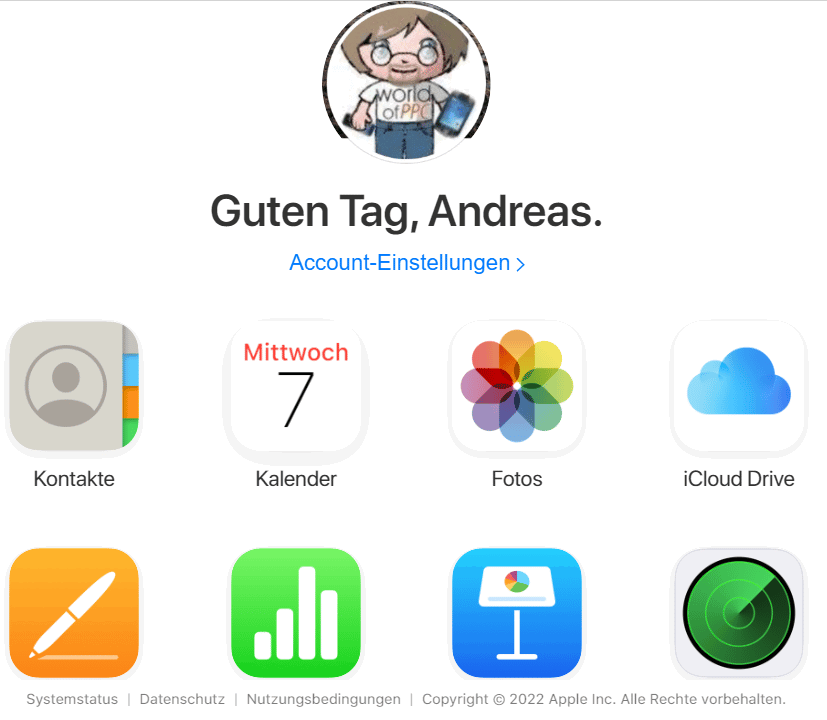 - Tippt in den Einstellungen der iPhones und iPads mit dieser Apple ID auf Euer Kontobild, dann auf iCloud.