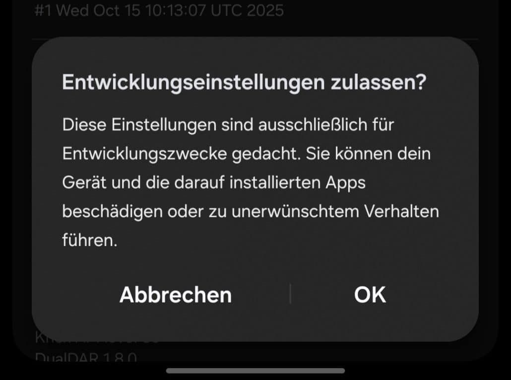 - Bestätigt, dass ihr die Entwickleroptionen aktivieren wollt.