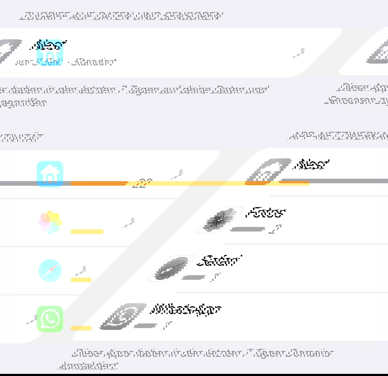 Apps laufen auf Eurem iPhone so vor sich hin, in Vordergrund, im Hintergrund, Ihr seht nur, was sie auf dem Bildschirm tun. Der App-Datenschutzbericht gibt Euch mehr Informationen!
