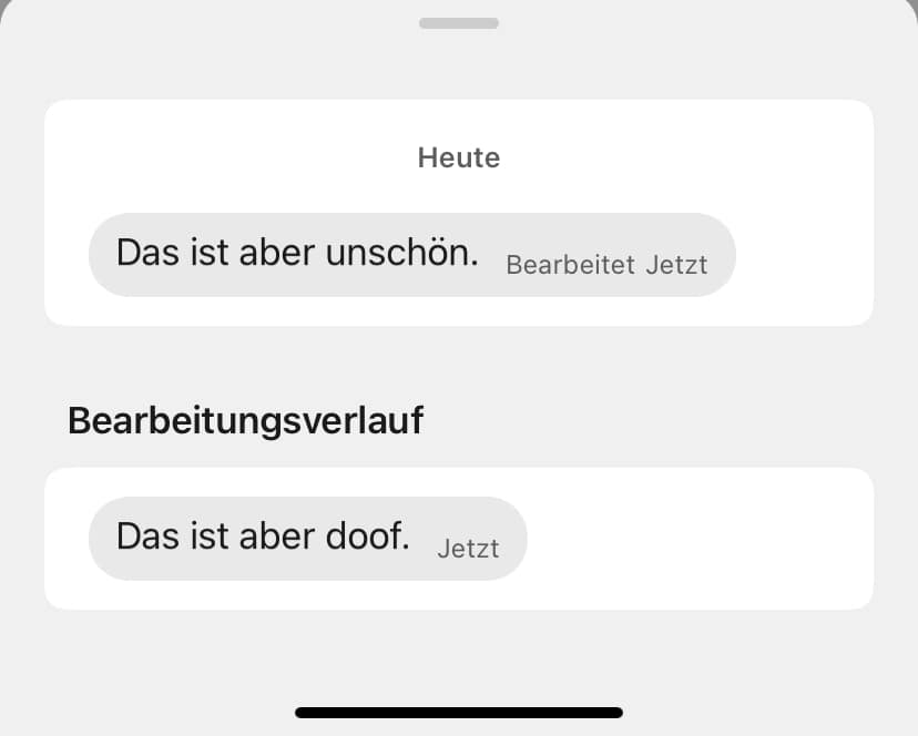 Das bedeutet auch: Wenn ihr euer Handy wechselt und das Backup nicht ordnungsgemäß übertragt, gehen auch die Bearbeitungsverläufe verloren. Die aktuelle Version der Nachrichten bleibt erhalten, aber die Historie verschwindet.