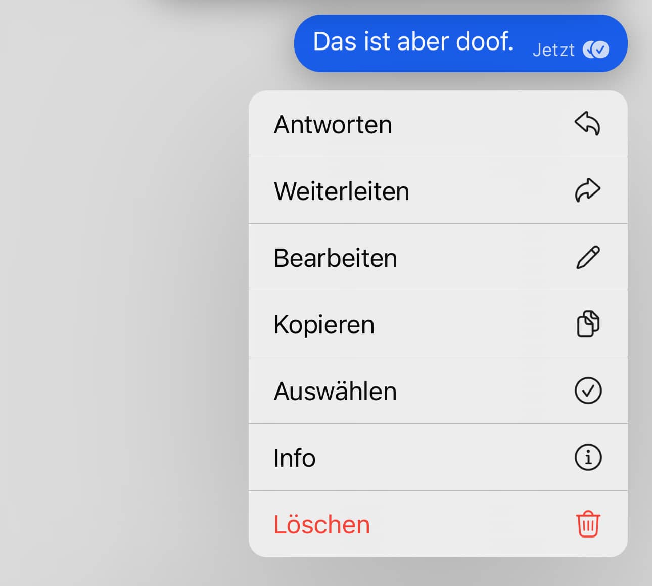 - Als Empfänger haltet bei einer bearbeiteten Nachricht den Finger auf die Nachricht, bis sich ein Kontextmenü öffnet.