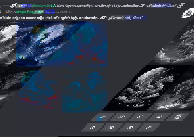 - Mit den V-Buttons erzeugt ihr Variationen, mit U upscalet ihr auf 4K oder sogar 8K.