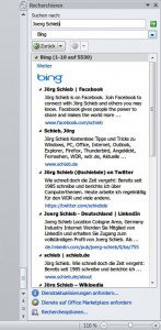 Sofort erscheint auf der rechten Seite ein neues Fenster und wartet auf Ihre Suchanrage. Im zweiten Feld von oben stellen Sie ein, dass Word mithilfe von Bing suchen soll. Ein Klick auf den Pfeil, und Sekunden später liegen die Suchergebnisse vor.
