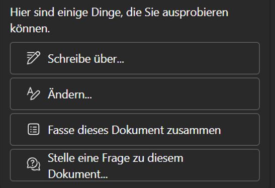 - Intelligente Einleitungen: „Schreibe einen professionellen Einführungssatz zu diesem Dokument“ analysiert den gesamten Inhalt und erstellt einen passenden Opener, der den Leser optimal auf das Kommende vorbereitet.