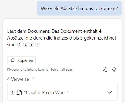 - Transparente Quellenarbeit: Copilot markiert alle Quellen seiner Aussagen mit Zahlen und liefert detaillierte Referenzen mit – ein Muss für professionelle Dokumente.