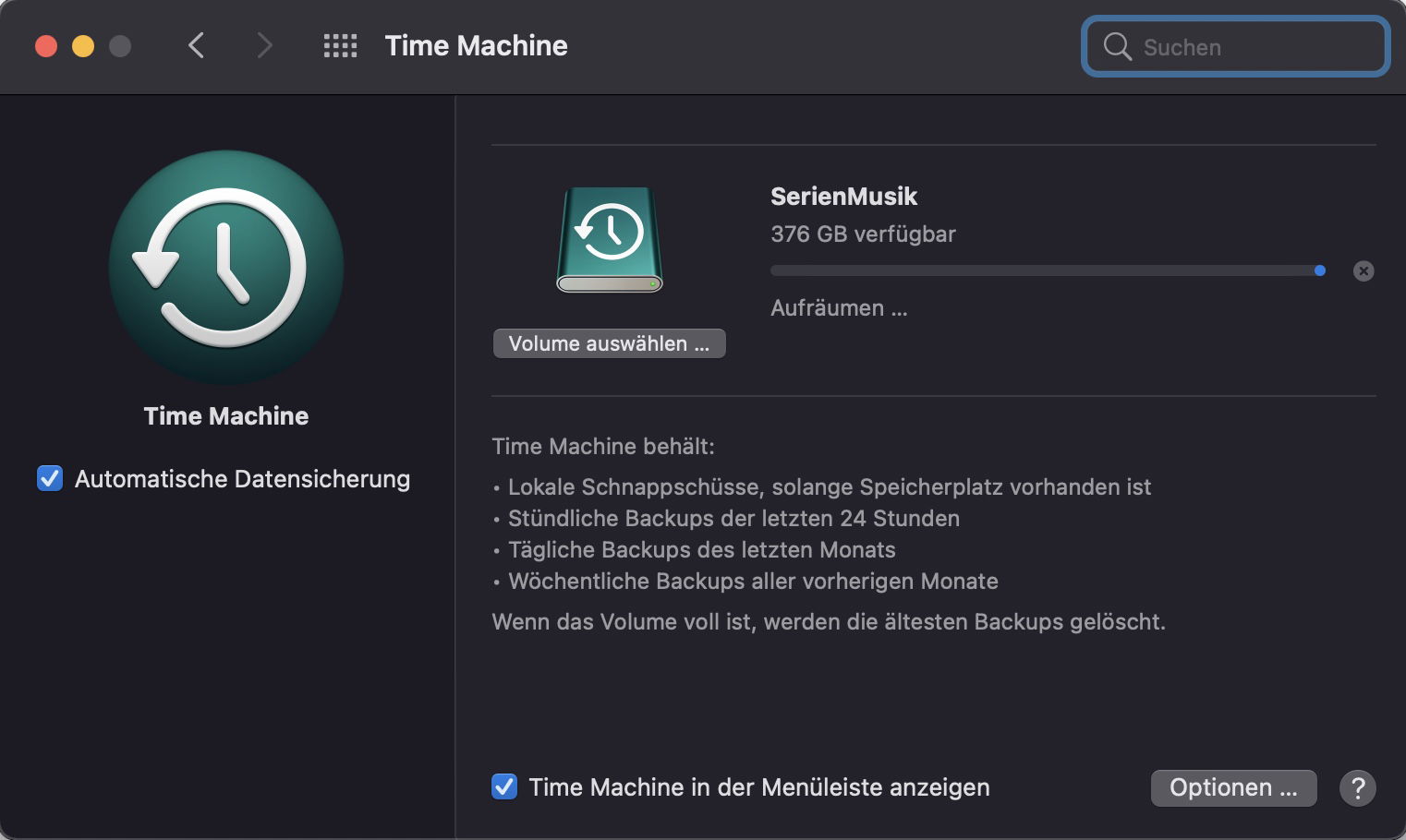 Mehr müsst ihr nicht machen: Die Sicherung läuft automatisch, wenn der Mac eingeschaltet und das Laufwerk verbunden ist. Ist es voll, dann werden automatisch die ältesten Sicherungen gelöscht. Time Machine ist und bleibt eine der elegantesten Backup-Lösungen – und wird kontinuierlich besser.