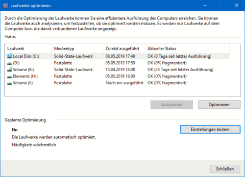 - Bei HDDs: Automatische Defragmentierung aktiviert lassen