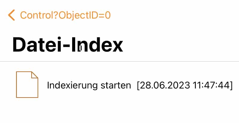 - Durch Tippen auf Indexierung starten beginnt das Durchsuchen. Das kann bei großen Sammlungen 15-30 Minuten dauern