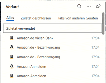 Unter Einstellungen > Verlauf können Sie in Edge die Liste der besuchten Webseiten aufrufen. Sie sehen alle aufgerufenen Seiten in chronologischer Reigenfolge. Je weiter Sie nach unten rollen, desto länger ist der Aufruf der Seite her.