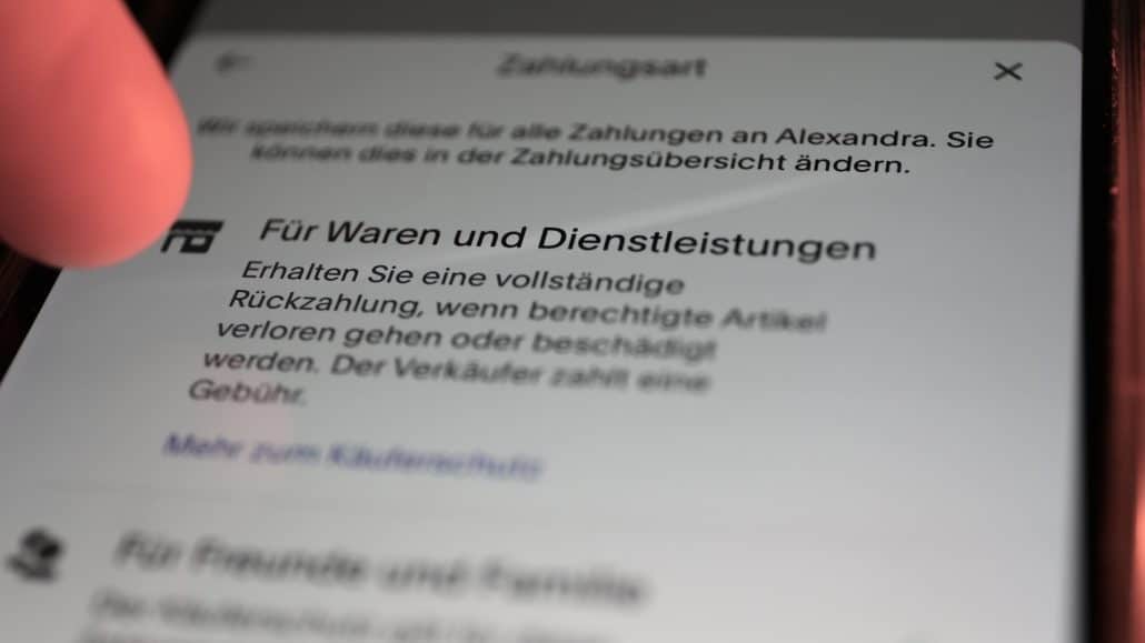 Der Unterschied ist entscheidend: Bei „Für Waren und Dienstleistungen“ habt ihr als Käufer 180 Tage Käuferschutz und könnt bei Problemen euer Geld zurückfordern. Bei „Freunde und Familie“ gibt es diesen Schutz nicht – die Funktion ist ausschließlich für vertrauensvolle, private Geldtransfers gedacht.