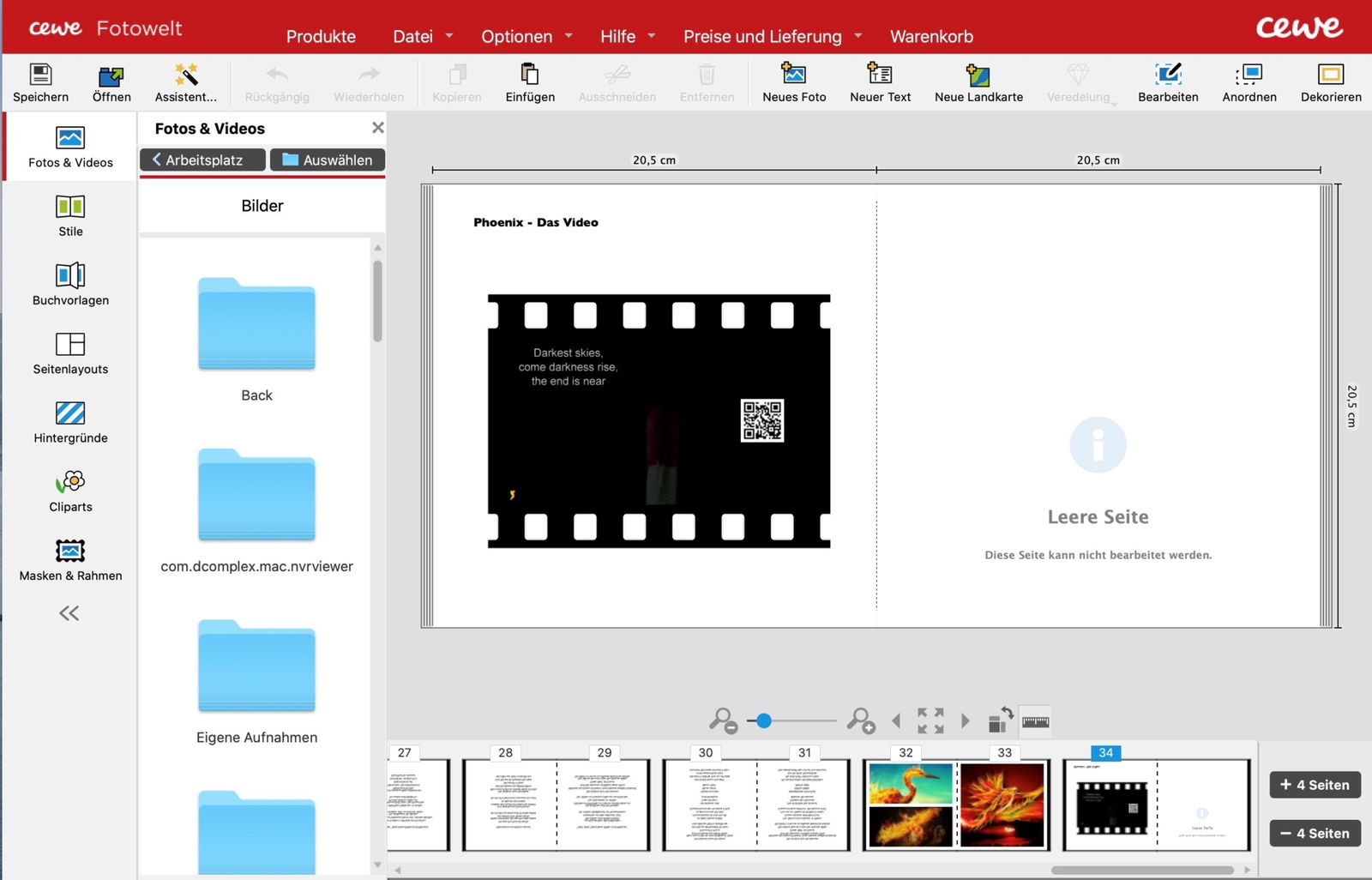 Die Lösung ist denkbar elegant: Ihr ladet in der Software das Video hoch, das dann auf den Servern des Anbieters gespeichert wird. Alternativ könnt ihr auch einen Link zu einem YouTube-Video, TikTok-Clip oder Instagram-Reel angeben. Im gedruckten Buch erscheint dann ein Standbild des Videos mit einem kleinen QR-Code darin. Den kann der Nutzer des Fotobuches mit der Kamera-App seines Smartphones scannen und wird dann ohne Zusatzsoftware direkt auf das Video geleitet.