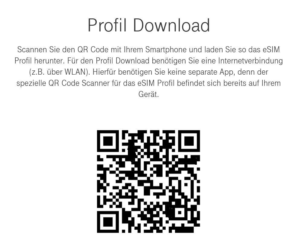 Dieses Profil kann im einfachsten Fall im Kundenbereich Ihres Netzbetreibers heruntergeladen werden. Auf Wunsch bekommen Sie es auch als Brief nach Hause geschickt. Beide Varianten unterscheiden sich aber in der Anwendung nicht: Das Profil ist ein QR-Code, den Sie über die Kamera Ihres Smartphones scannen. Das Telefon überträgt dann dieses Profil in die Uhr. Diese ist dann unter der selben Telefonnummer für Anrufe erreichbar wie Ihr Smartphone.