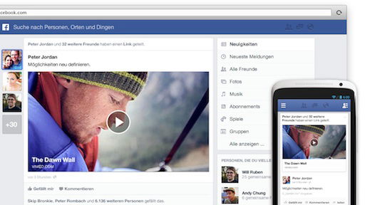 Auch erscheinen mehr Logos, etwa neben Links und Querverweisen. Das neue Layout im Facebook Newsfeed erinnert an das von Zeitungen und Zeitschriften. Das ist durchaus gewollt, denn Zuckerberg will, dass man im neuen Facebook wie in einer Zeitung liest. Künftig präsentiert sich Facebook auf PC, Tablet und Smartphone identisch. Ein Layout für alle Geräte.