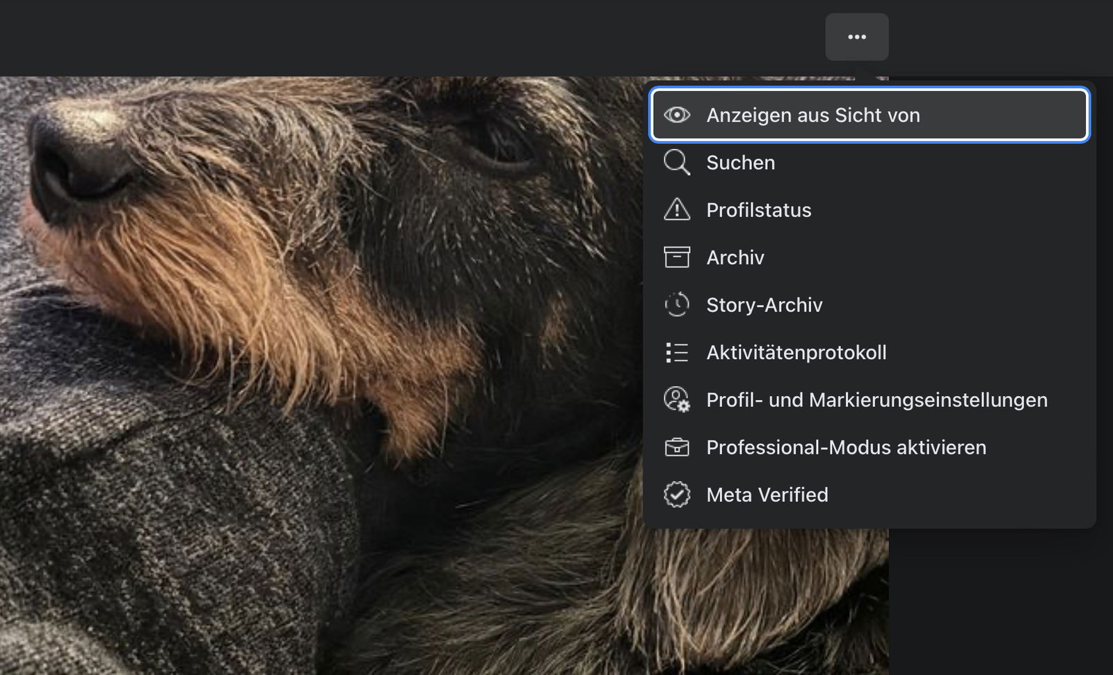 - Neben den Tabs unter dem Profilbild klickt rechts auf die drei Punkte, in dem Menü auf Anzeigen aus Sicht von.