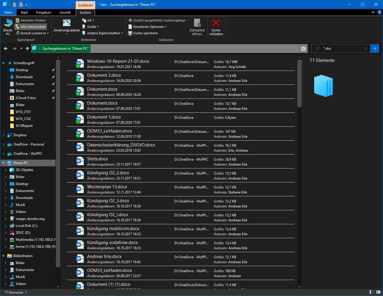Windows durchsucht dann das ausgewählte Verzeichnis inklusive aller Unterordner und zeigt euch alle gefundenen Dateien in einer übersichtlichen Liste an.