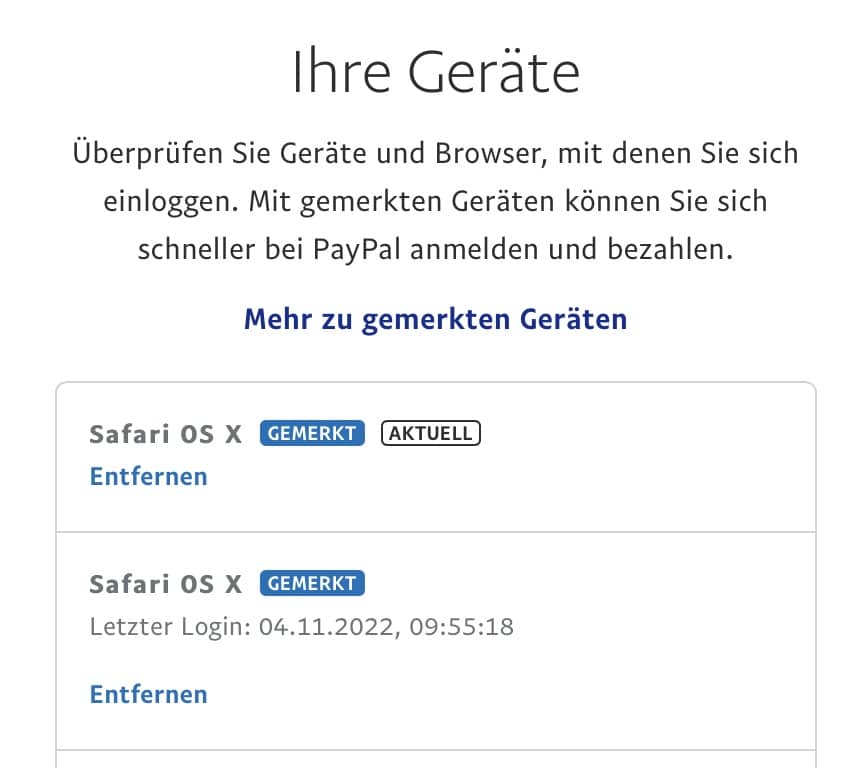 Macht es euch zur Gewohnheit, mindestens alle drei Monate eure gespeicherten Geräte zu überprüfen. PayPal hat die Verwaltung in den letzten Jahren deutlich verbessert: