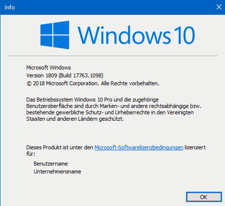 Alternativ drückt ihr gleichzeitig die Tasten Windows + R und gebt im Eingabefeld winver ein. Hier bekommt ihr dann nur die Versions- und Buildinformationen angezeigt – kompakt und übersichtlich.