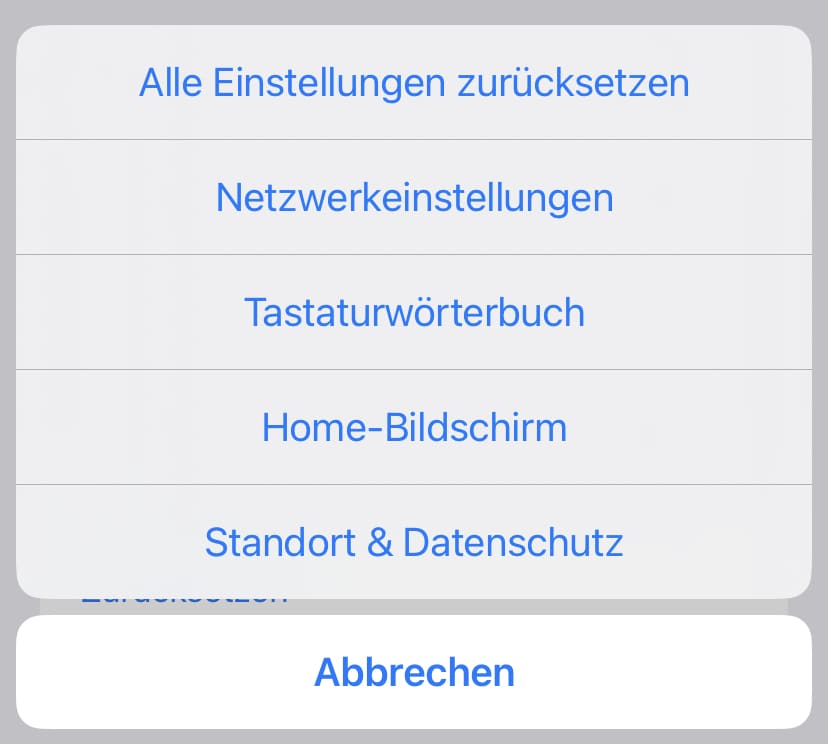• In den Einstellungen von iOS tippt auf Allgemein > iPhone übertragen/zurücksetzen.