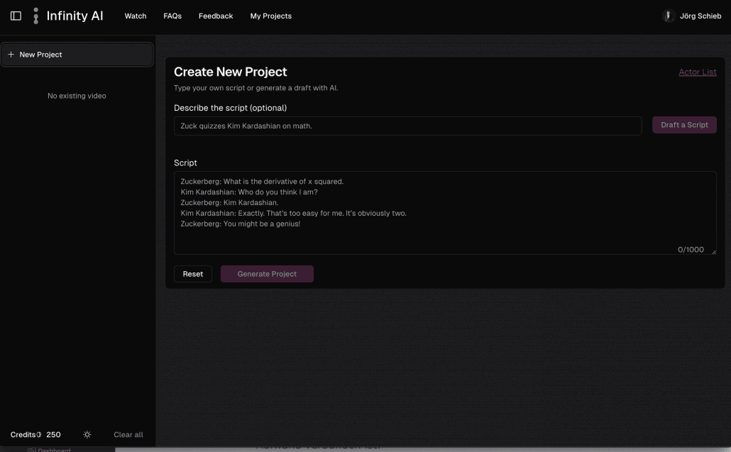 Infinity AI erzeugt Videos und Stimmen