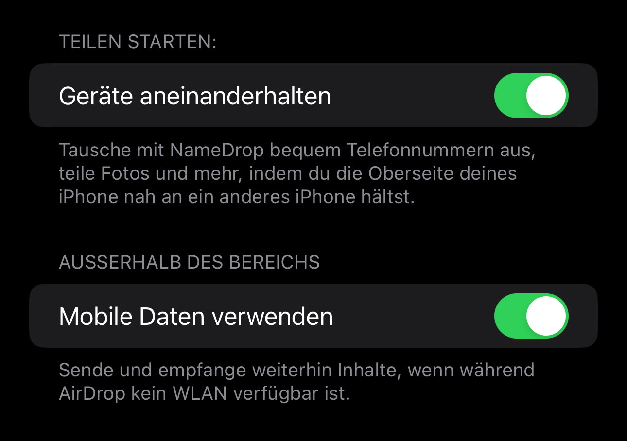 Seid ihr immer noch unsicher? Dann deaktiviert NameDrop einfach. NameDrop ist eine Erweiterung von AirDrop, der kabellosen Kommunikationmethode von Apple: